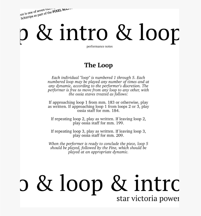 When I began writing Intro & Loop, I knew that I wanted to do something to artistically reflect the fact that PIXEL MASTERWORKS is a project that exists at the intersection between video games and classical music.